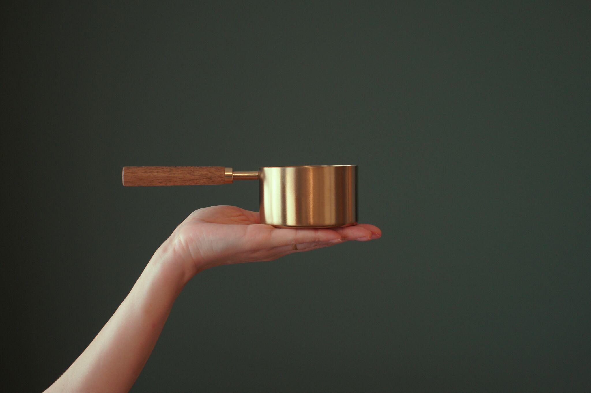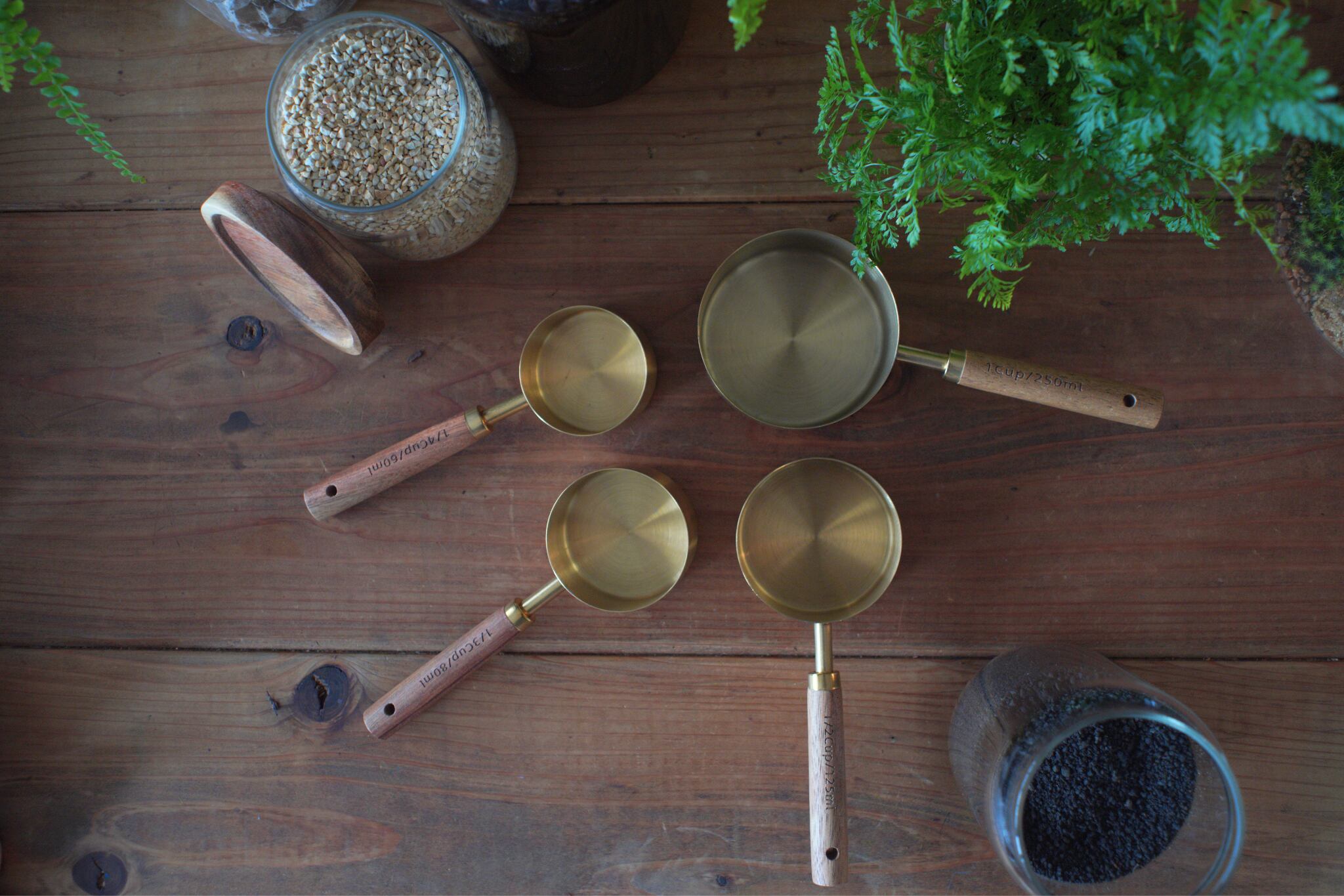 落ち着いたゴールドカラーで計量機能付きの便利なスクープです。